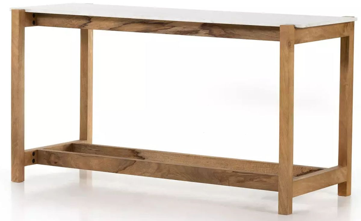 Rectangular tabletop of solid white marble.