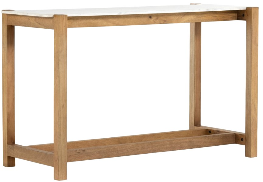 Simple and streamlined, an eye-catching material mix takes this modern bar table to the next level. Auburn-finished mango forms an open, structured frame for a rectangular tabletop of solid white marble, for a midcentury-infused twist on traditional farmhouse styling.Read More