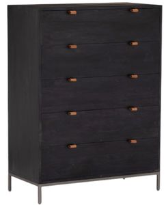 Inspired by clean mid-century design, a stylish dresser of black-washed poplar offers plenty of bedroom storage space thanks to five spacious drawers. Metal-secured leather pulls add a textural element of surprise.Read More