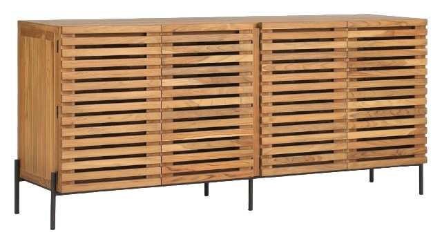 Solid FSC®-certified teak forms a midcentury-inspired sideboard, with minimalist slatted fronts for a light, linear look. Interior shelves are removable for flexible storage. Cover or store indoors during inclement weather and when not in use.Read More