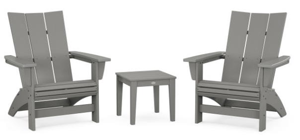 Set includes (2) Modern Grand Adirondack Chairs and (1) Newport 18" Side Table