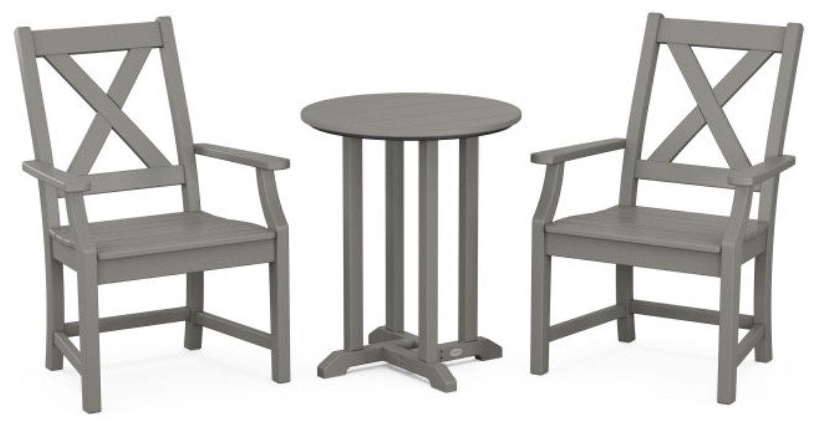 A blend of modern design and rustic elements, the Braxton Collection is always a conversation starter. Forever in season and forever in style, this all-weather collection finds its balance with clean lines, curved profiles, and farmhouse-inspired x-back design. Set an inviting dinner scene for family and friends with our Braxton 3-Piece Round Dining Set.Read More