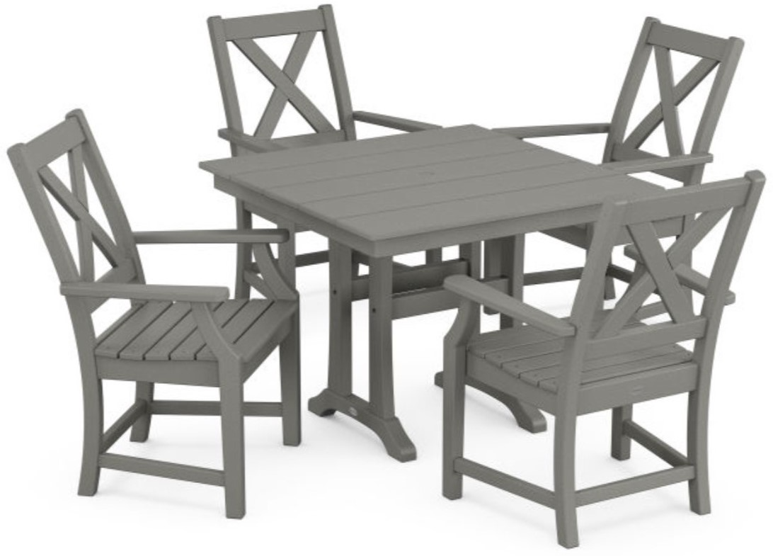 Includes (4) Braxton Dining Arm Chairs and (1) Farmhouse Trestle 37" Dining Table