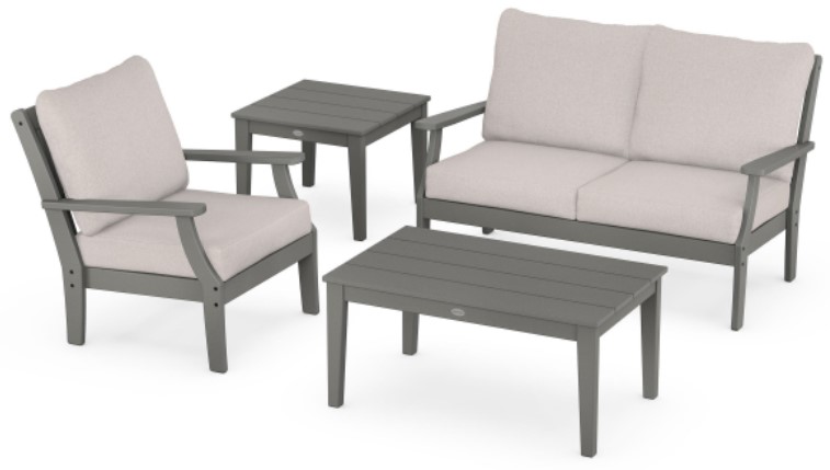Create a stylish and cozy retreat on your outdoor patio or deck with the Braxton 4-Piece Deep Seating Set. This all-weather set strikes the perfect balance of straight lines and curved details. With soft pillow back cushions and a classic cross back design this set comfortably seats three, perfect for smaller gatherings.Read More