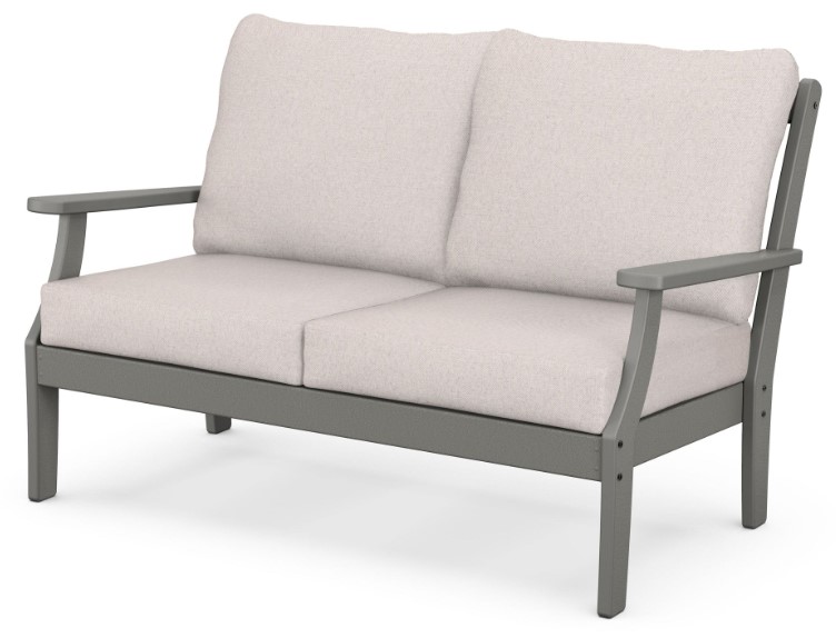 The Braxton Deep Seating Loveseat seats two and pairs comfort and style with soft pillow back cushions and a charming cross back design. This loveseat strikes the perfect balance of straight lines and curved details for a style that is both traditional and timeless. Group this all-weather loveseat with a coordinating Newport End Table or combine with the rest of the Braxton Collection to create a cohesive outdoor space.