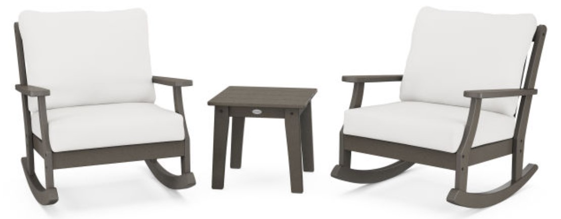 Includes (2) Deep Seating Rocking Chairs and (1) Lakeside 18" End Table