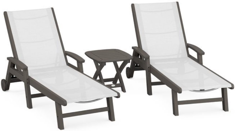 Lie back and relax in the Coastal 3-Piece Chaise with Wheels Set, fitted with a breathable fabric sling for optimal comfort. Conveniently equipped with wheels, you can easily move your all-weather chaise lounges to wherever the sun takes you.Read More