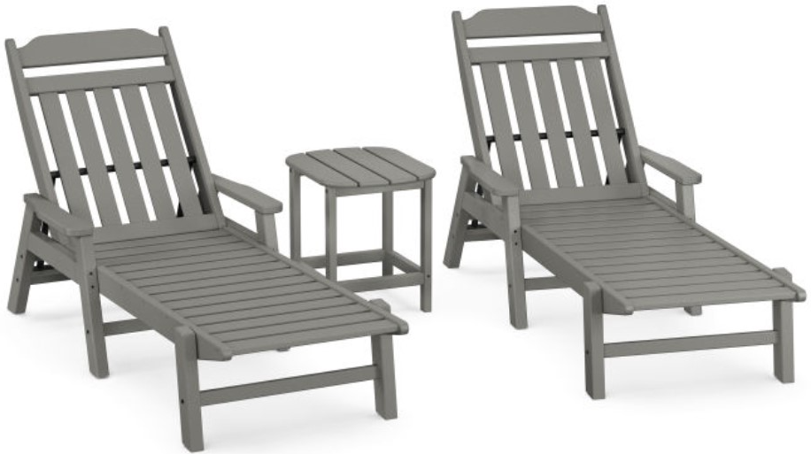 Set includes (2) Country Living Chaises with Arms and (1) South Beach 18" Side Table