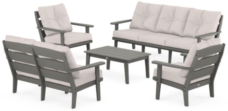 Includes (1) Lakeside Deep Seating Loveseat, (1) Lakeside Coffee Table, (2) Lakeside Deep Seating Chairs, and (1) Lakeside Deep Seating Sofa.