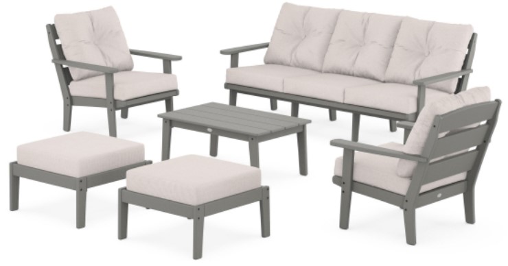 Includes (1) Lakeside Deep Seating Sofa, (1) Lakeside Coffee Table, (2) Lakeside Deep Seating Chairs, and (2) Lakeside Deep Seating Ottomans