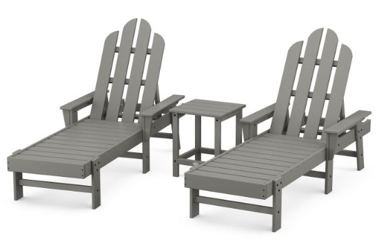 Even if you don't spend your summer in the Hamptons, you can still bring a part of the famous Long Island beach to your own outdoor living space with the POLYWOOD® Long Island Chaise 3-Piece Set. It includes two contoured Long Island Chaises and a Long Island 18" Side Table. This durable set is constructed of POLYWOOD all weather recycled lumber, making it sturdy enough to withstand nature's elements. And although it looks like painted wood, it requires none of the maintenance real wood does.Read More