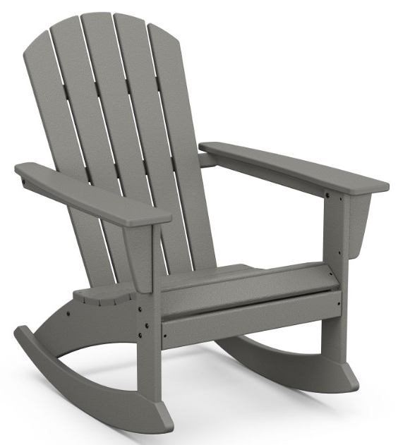 Sit back and unwind in the Nautical Adirondack Rocking Chair, complete with comfortably contoured seat and waterfall front. With a fanback design and sleek profile, this Adirondack rocker looks great in any outdoor space. Pair a couple rocking chairs with a POLYWOODᆴ side table on your front porch or create a spot for friends and family to gather with several chairs on your patio.