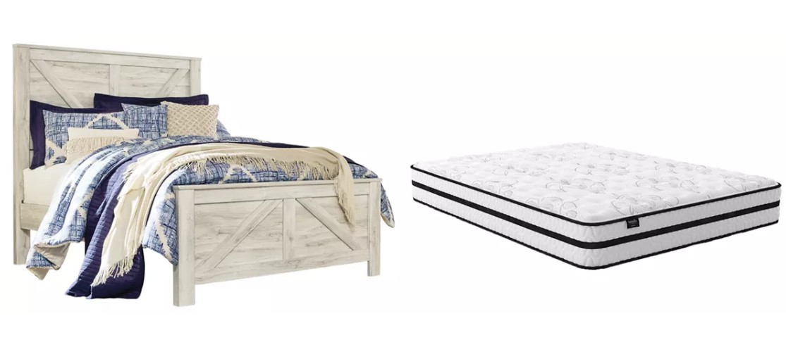 Includes panel bed (headboard, footboard and rails) and hybrid innerspring mattress