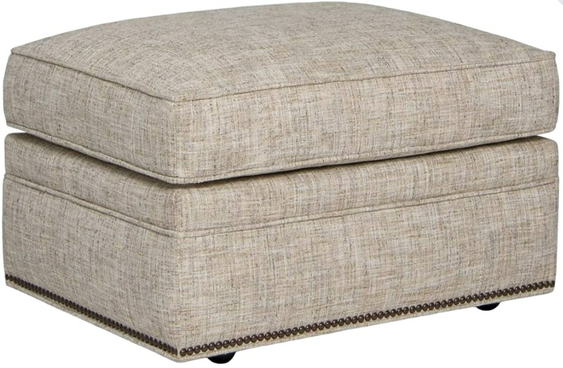 Introducing the Smith Brothers Customizable 550 Ottoman: Style Meets Versatility. Crafted with upholstery boasting a subtle texture and elegant nail head trim, this ottoman offers a classic rectangular shape. Enjoy easy movement with included casters.Read More